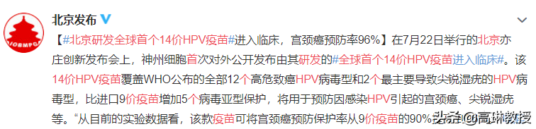 其实,14价疫苗已经走进了临床阶段,但是离真正打开使用还有一段距离,但是也不会太久。2021年7月,神州细胞公开发布全球首个14价HPV疫苗进入临床。