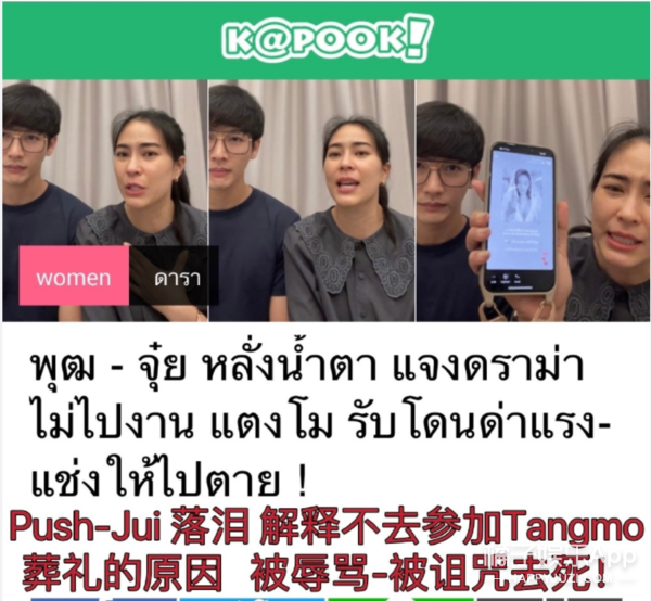 Push称当得知Tangmo的噩耗后第一时间他们都有发快拍悼念,