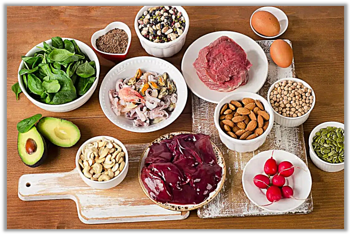多吃——瘦肉、蛋类、鱼虾、动物肝脏、豆类及豆制品、海产品、新鲜蔬菜、时令水果。